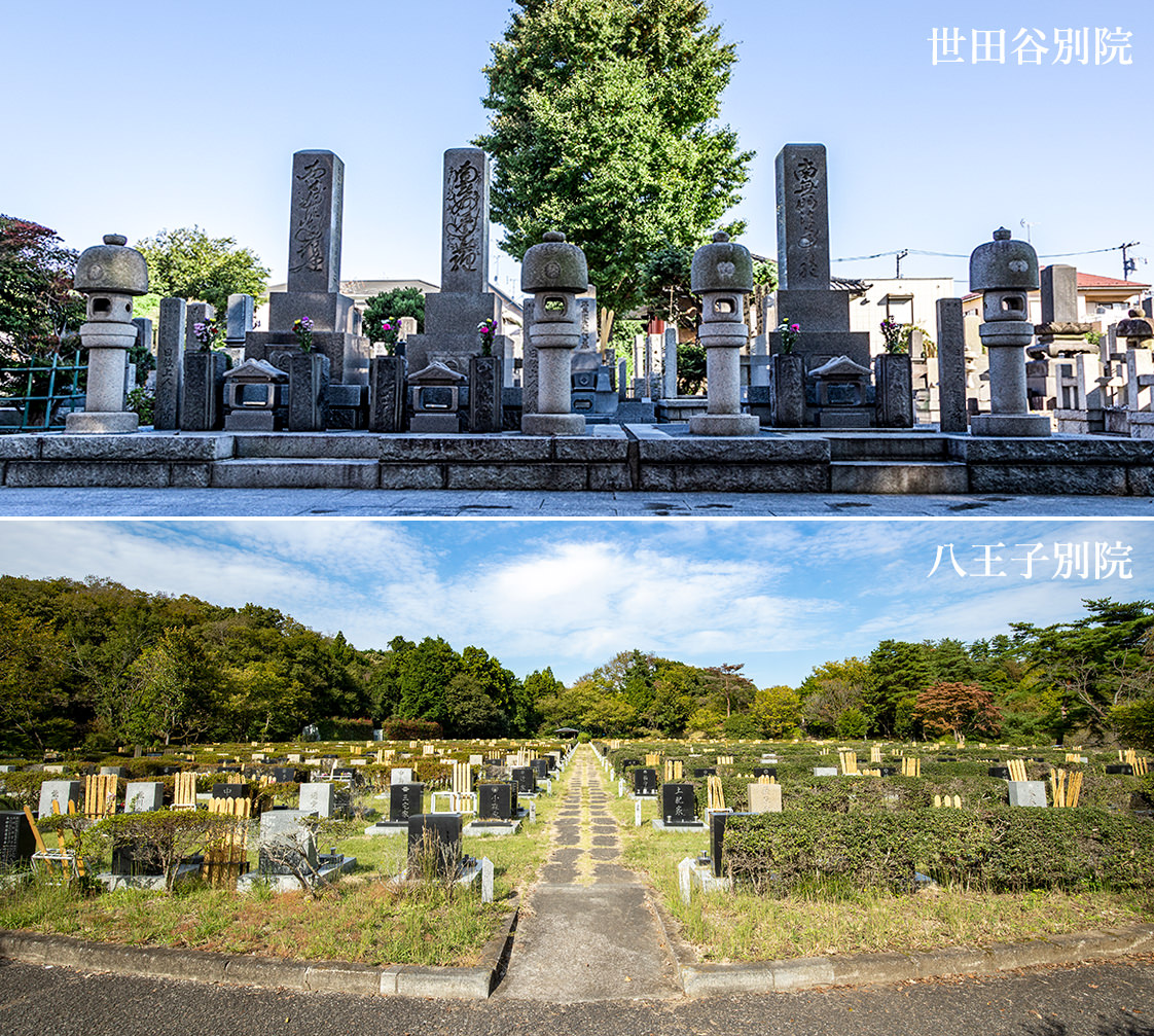 世田谷区と八王子市に墓地があり、どちらにも納骨堂があります。
